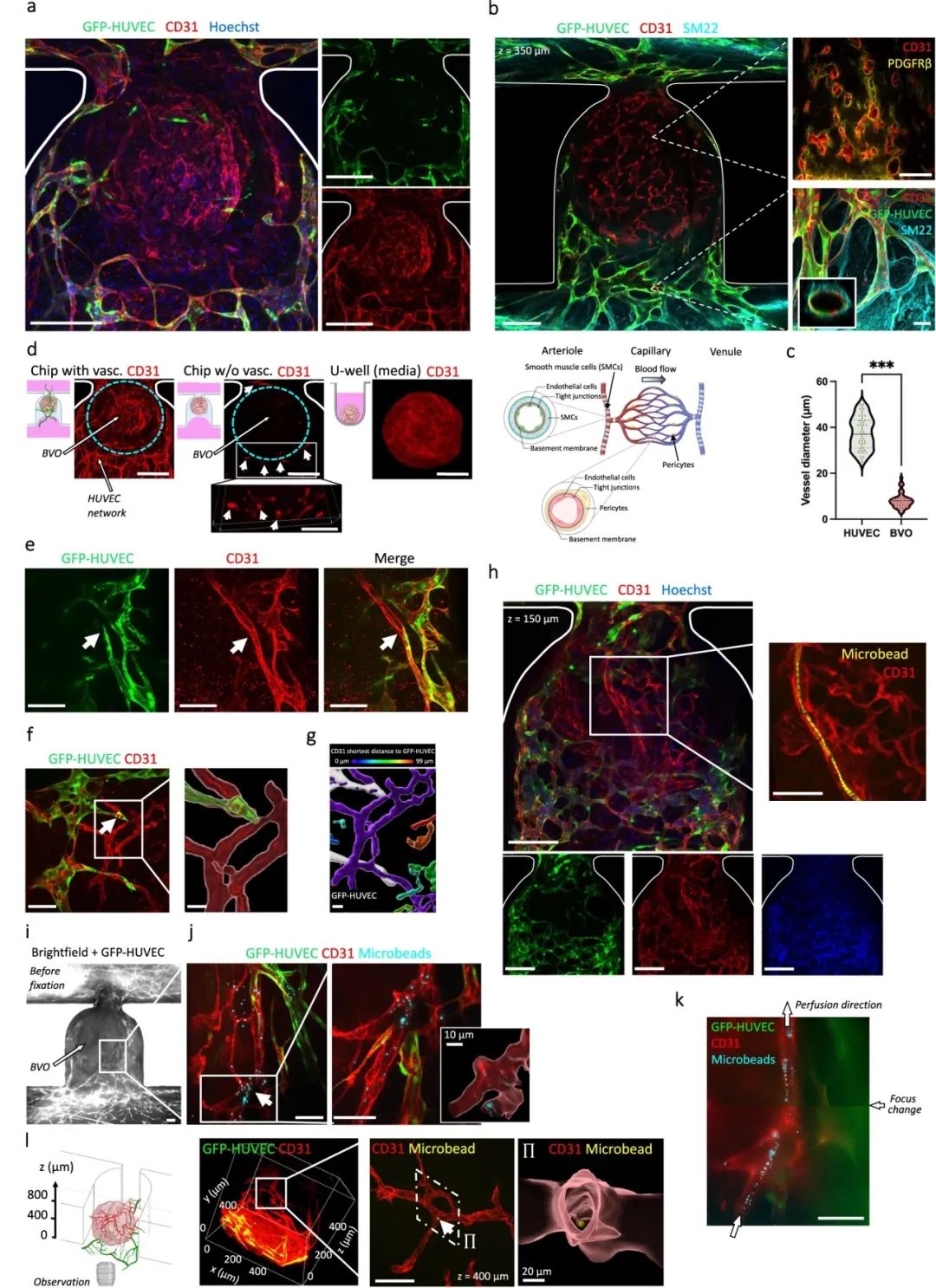 图3:芯片上血管类器官(BVOs)的血管化